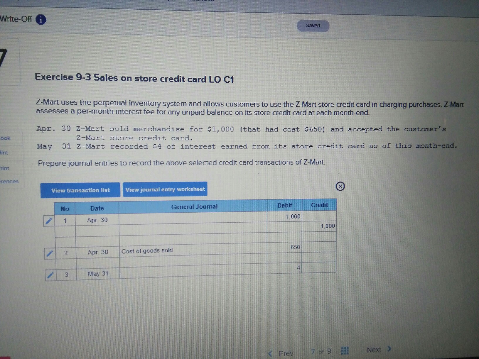 On May 1 it sold 1400 of merchandise for cash. On May 1 it sold 1400 of merchandise on credit. X-Mart uses the perpetual Inventory system to account for its merchandise.